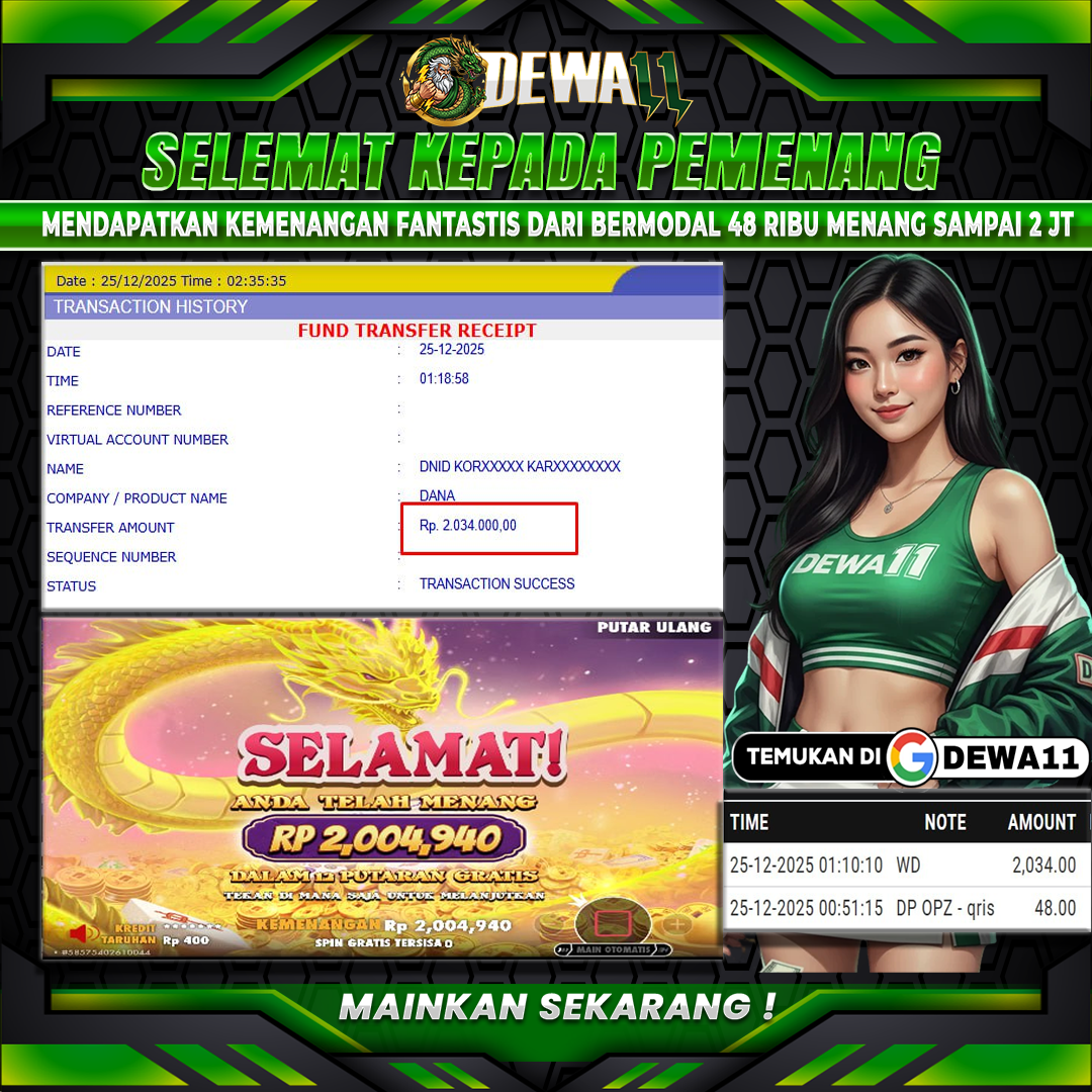 DEWA11 menghadirkan game jackpot vip yang di lengkapi fitur khusus new member hanya dengan modal deposit 48k dijamin akan withdraw 2 juta malam ini.